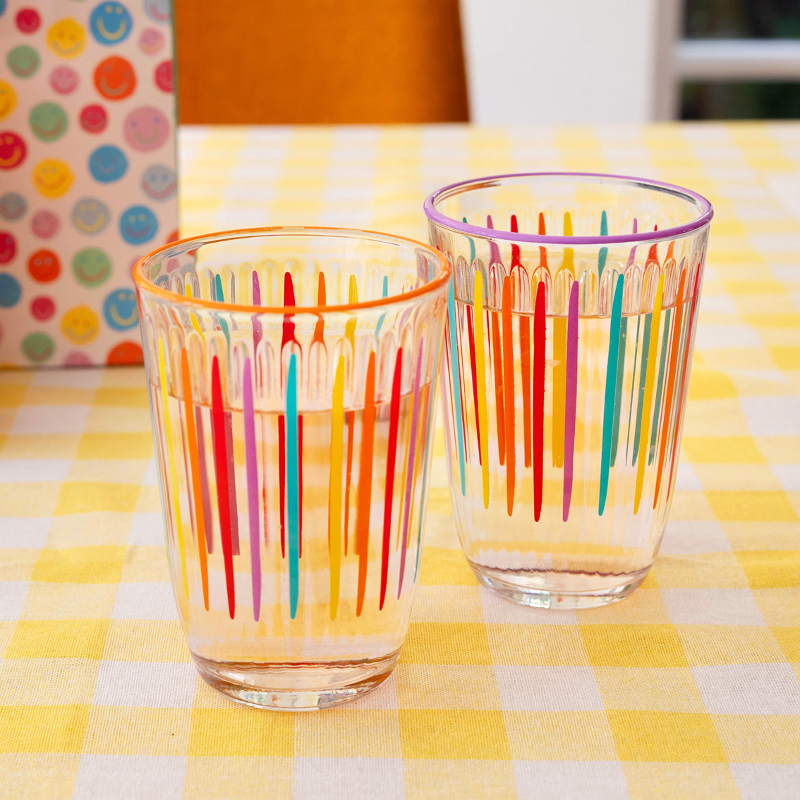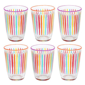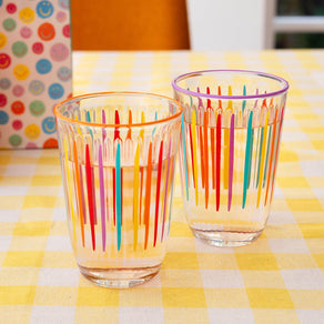 About Bright Multi-Coloured Striped Tall Glass Tumblers: