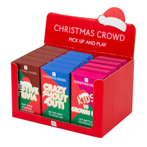 Can't decided on a favourite? Offer your customers a choice of our Christmas Crowd games with this convenient POS unit. The POS contains an equal amount of our 'Kids vs Adults', 'Festive Trivia' and 'Crazy Shout Out' games - simply top up on individual units when you sell through. With games suitable for kids and adults, these Christmas games make a great addition to your games or gifting section as stocking fillers.