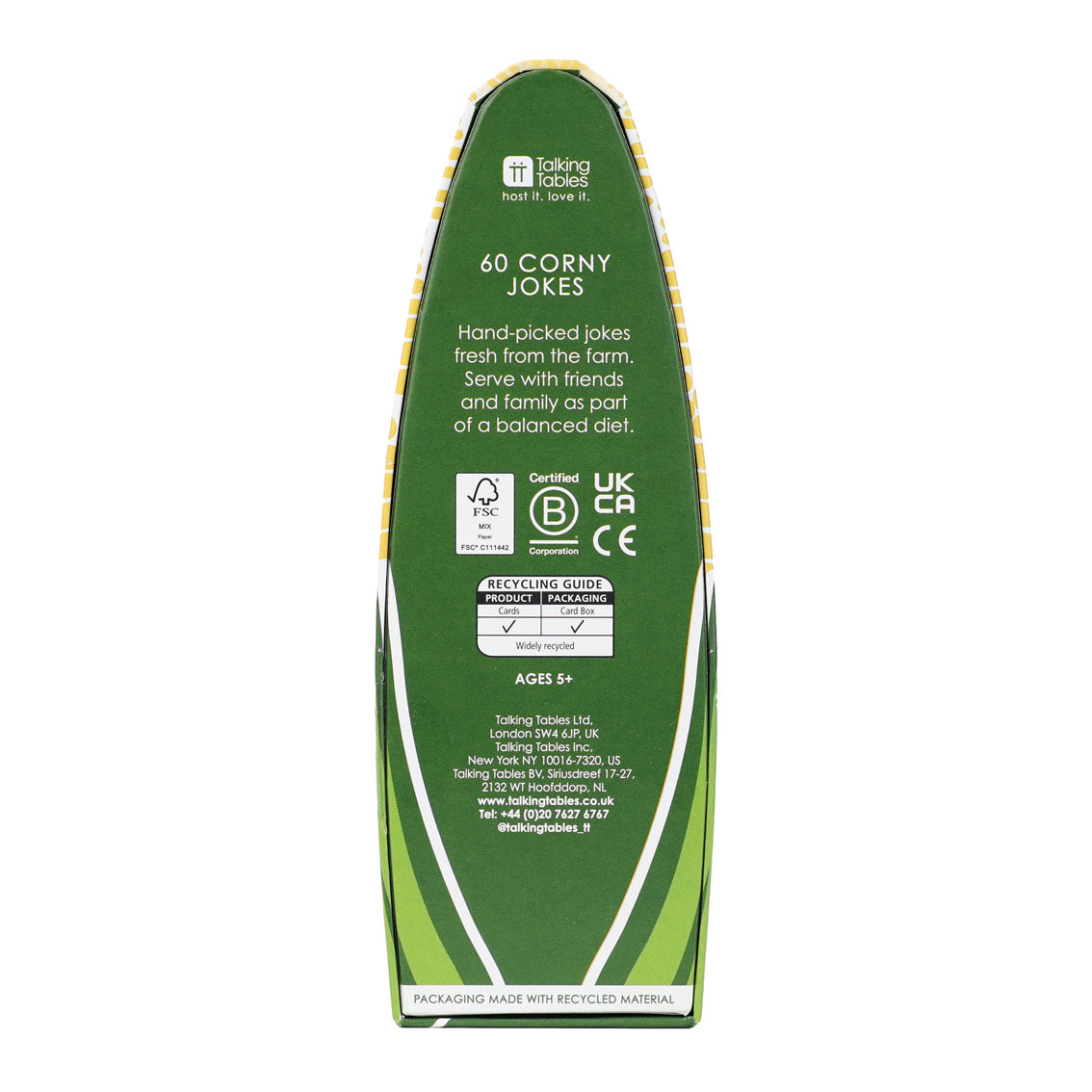 Get ready to harvest the laughs with our Corny Jokes – a-maize-ingly punny foodie jokes for your cheesiest customers. Shaped like a cob of corn and packed with 60 brilliantly bad puns, these jokes are hand-picked and fresh from the farm – guaranteed to bring a chuckle to the dinner table or BBQ. A light-hearted gift for those who relish a good pun, perfect for playful gifting and family fun.