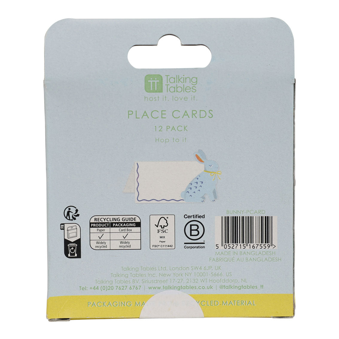 An easy add-on line for Easter and spring tablescaping ranges, these Easter Bunny Place Card Holders are made from FSC® paper and recycled card. Each card features a soft blue illustrated bunny with wavy line detailing — a simple way for shoppers to personalise their Easter or spring table settings. A small but effective line to drive basket spend across seasonal dining displays.