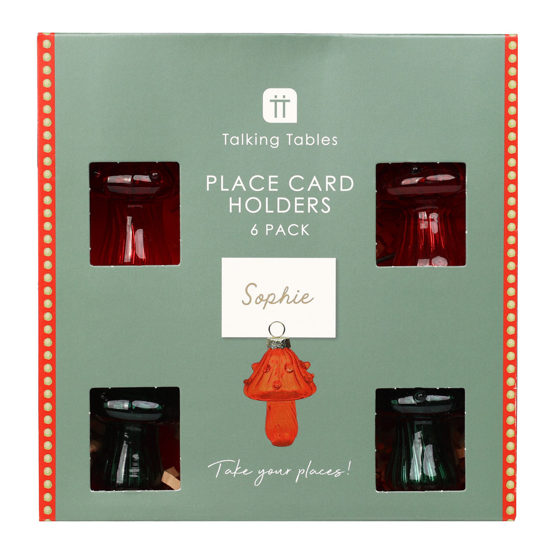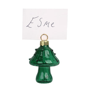 A charming glass mushroom design in a red and green colour scheme, these place card holders will add a dash of colour and quirkiness to any dinner table. Reminiscent of Christmas tree baubles, these holders match perfectly with our Midnight Forest collection for a forest-inspired theme. After using them on the table, your customers can also use these little glass mushrooms as Christmas tree decorations.