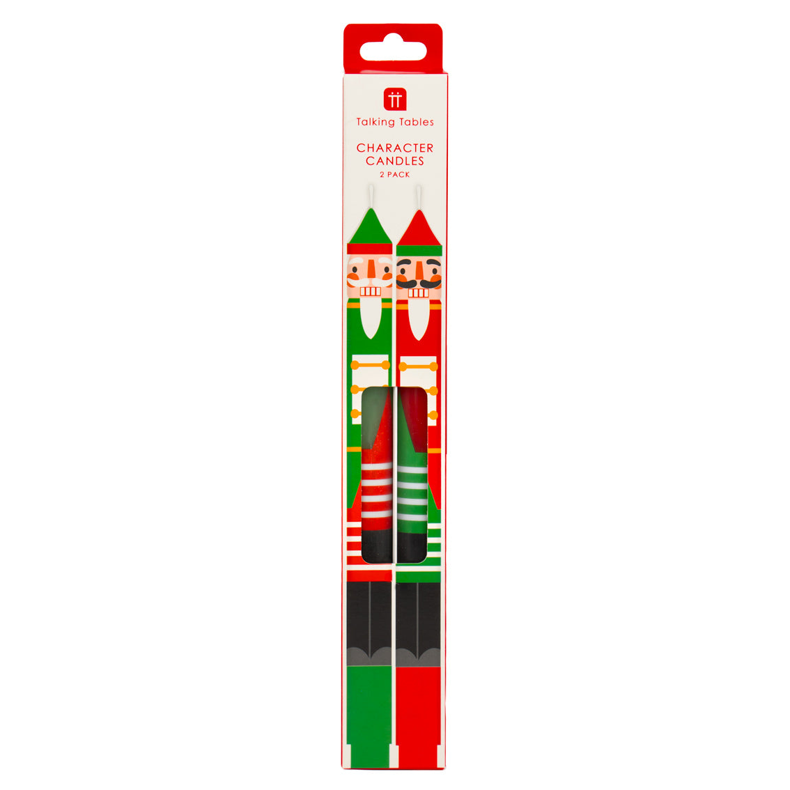 A pair of characterful Green & Red Nutcracker Dinner Candles to add fun and festive cheer to your Christmas collections in-store. In each plastic-free box there is one green nutcracker and one red, which pairs effortlessly with the rest of the Botanical Nutcracker collection. They can be used to decorate a mantlepiece or as Christmas dinner candles upon dining tables throughout the festivities or on a mantlepiece with our string lights.