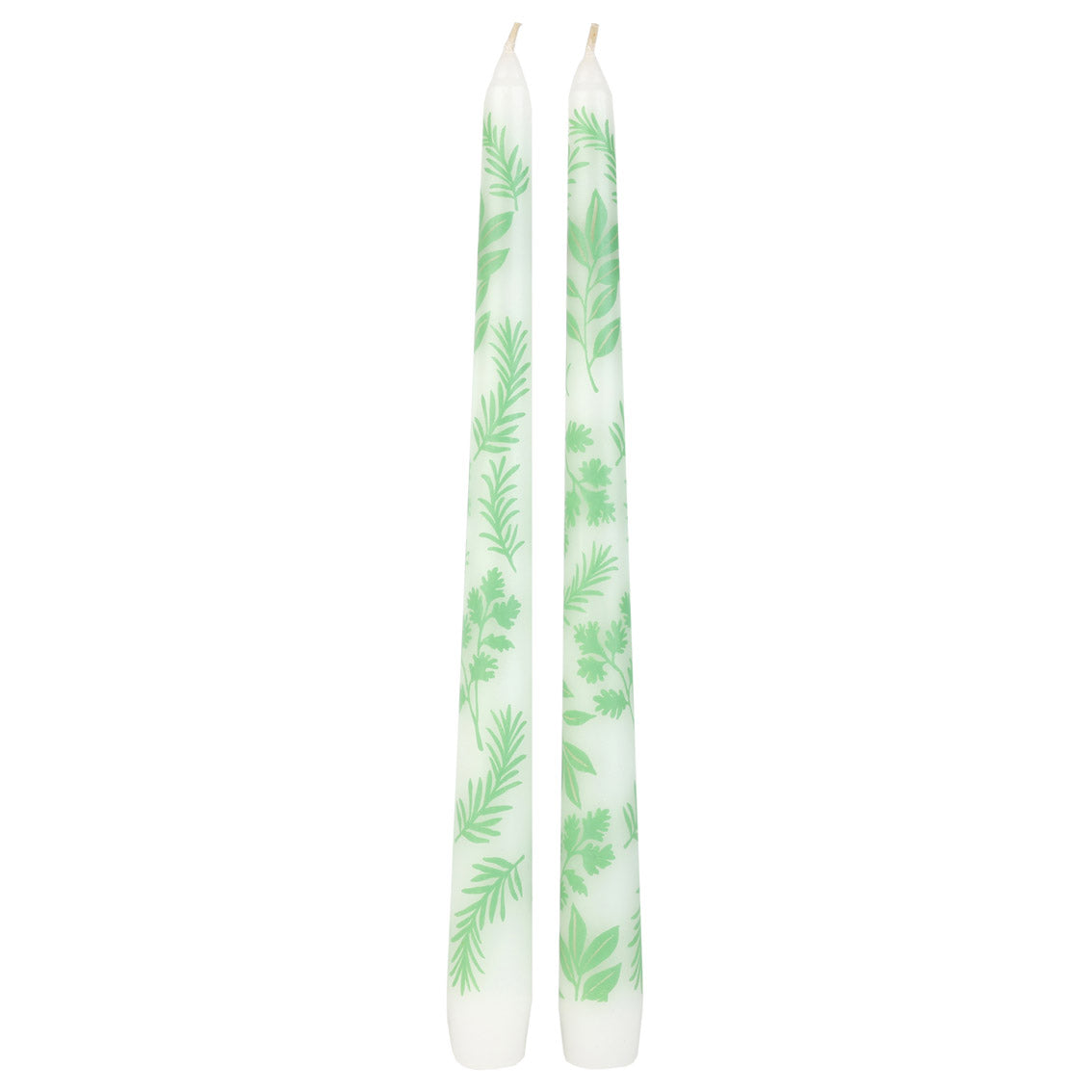 A new addition to our bestselling candle category, the Herb Taper Dinner Candles take inspiration from the natural beauty of the kitchen garden. Each 25cm candle features a hand-applied herb print in soft green tones, adding a subtle, botanical touch to the table. Made in Vietnam, these clean-burning candles create an effortlessly styled look, complementing neutral tableware and garden-inspired settings. Decorative unlit and when glowing, they’re a versatile option for dining and gifting.