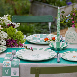 A new addition to our bestselling candle category, the Herb Taper Dinner Candles take inspiration from the natural beauty of the kitchen garden. Each 25cm candle features a hand-applied herb print in soft green tones, adding a subtle, botanical touch to the table. Made in Vietnam, these clean-burning candles create an effortlessly styled look, complementing neutral tableware and garden-inspired settings. Decorative unlit and when glowing, they’re a versatile option for dining and gifting.