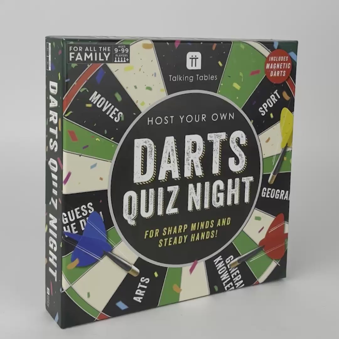 Bring the banter, bullseyes and brainpower to your customers’ games night with the Host Your Own Quiz Night Darts Game. Inspired by the rising popularity of darts both on screen and in pubs, this lively game combines the thrill of throwing darts with the challenge of a classic quiz. Wherever the dart lands determines the quiz category, while hitting the bullseye lets players steal points from their rivals — adding a competitive twist that guarantees laughs and friendly rivalry. Made using FSC materials, this reusable set is perfect for nights of fun with family and friends.