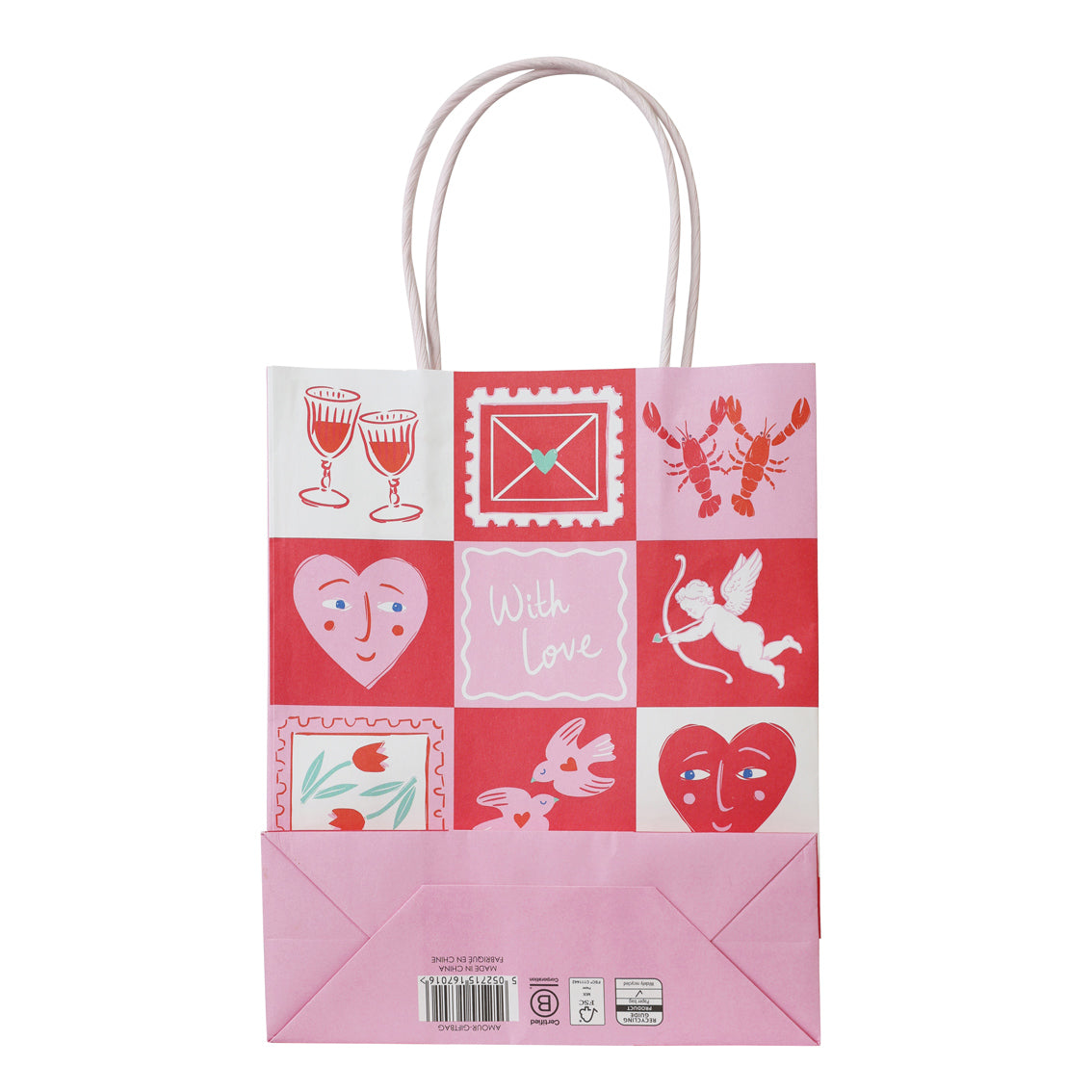 Part of the Bon Amour collection, this Love Icons Gift Bag is designed to make every gift feel extra special. With a bold pink and red checkerboard of charming illustrations of hearts, cherries and roses, this FSC®-certified paper bag captures the joyful spirit of love. Finished with sturdy twisted handles, it’s perfect for wrapping Valentine’s presents, wedding favours or thoughtful everyday gifts. Our gift bag is available to purchase as a single bag, offering flexibility for both retailers and customers.