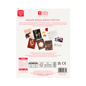 A sprout themed twist on our famous escape room game. This Mini Christmas Escape Room - Sprout Edition is a light-hearted family game. A fun addition to your festive collections, and a family friendly gift that makes a great stocking filler.