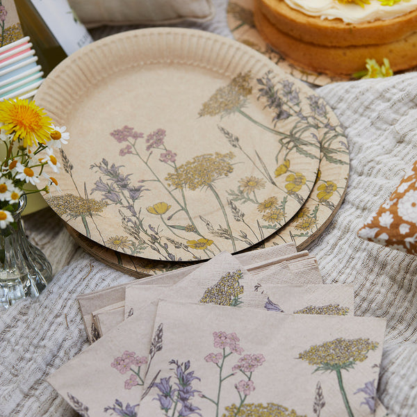 Part of our new Natural Meadow range, these neutral-coloured paper plates feature a delicate and beautifully detailed print of wildflowers, each with a hint of colour, from lilac to shades of yellow, green, and blue. These plates will be a favourite of horticulturist and flower lovers alike.