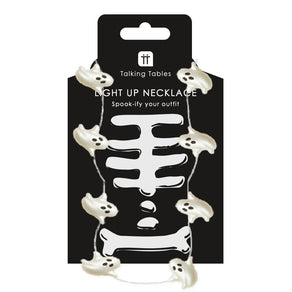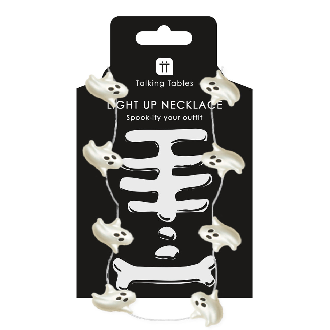 Add an instant spooky glow to Halloween outfits with this Ghost Light Up LED Necklace. Featuring mini ghost shaped lights that illuminate for maximum impact, this fun wearable accessory is an easy way to elevate costumes, party looks or trick or treating outfits. Supplied in a compact CDU display that sits seamlessly with the wider Halloween range, it’s a strong impulse buy with high visual appeal. Packaging is made using recycled card, keeping it thoughtful as well as fun.