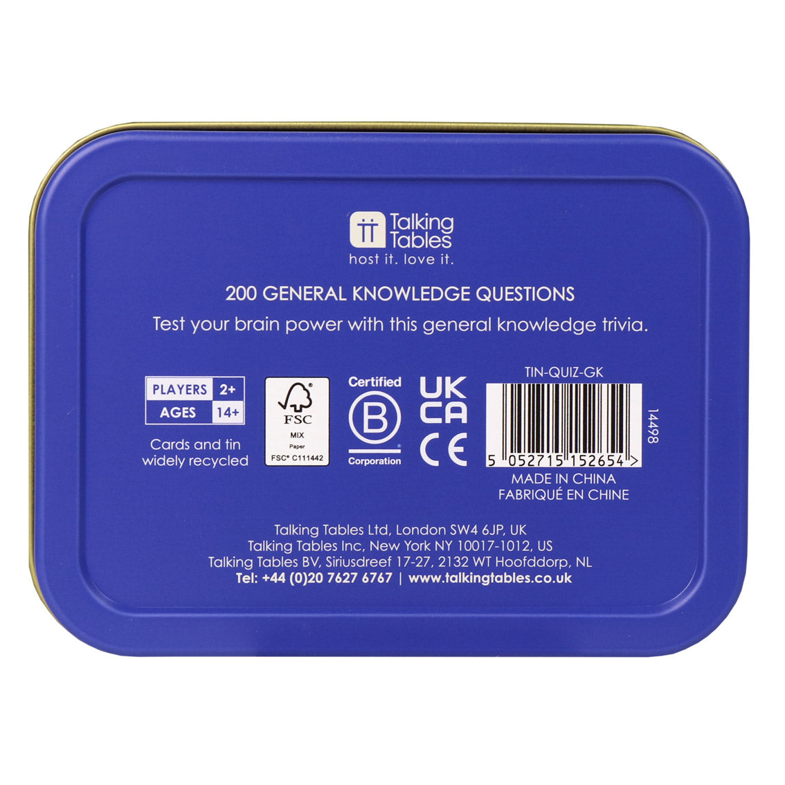 For those that love testing their brain power, our Quiz in a Tin – General Knowledge will challenge players with questions spanning topics from entertainment and culture to history, sport and more.