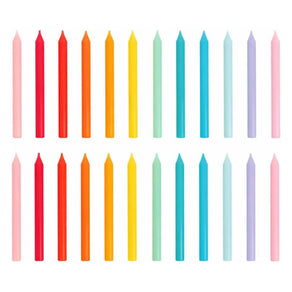 Pack of 24 candles in bold rainbow colours