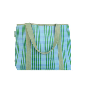 Daisy is a true spring-summer icon, continuing to trend across both fashion and homewares. This Recycled Plastic Daisy Flower Tote Bag captures that classic charm in a fresh, feel-good design. Made from recycled plastic materials, each bag is crafted by transforming used cement bags into durable, water-resistant threads woven into a strong new fabric. The blue and green check pattern, embroidered daisy motif, and ric-rac trim make it an everyday essential and a perfect giftable for friends and family.