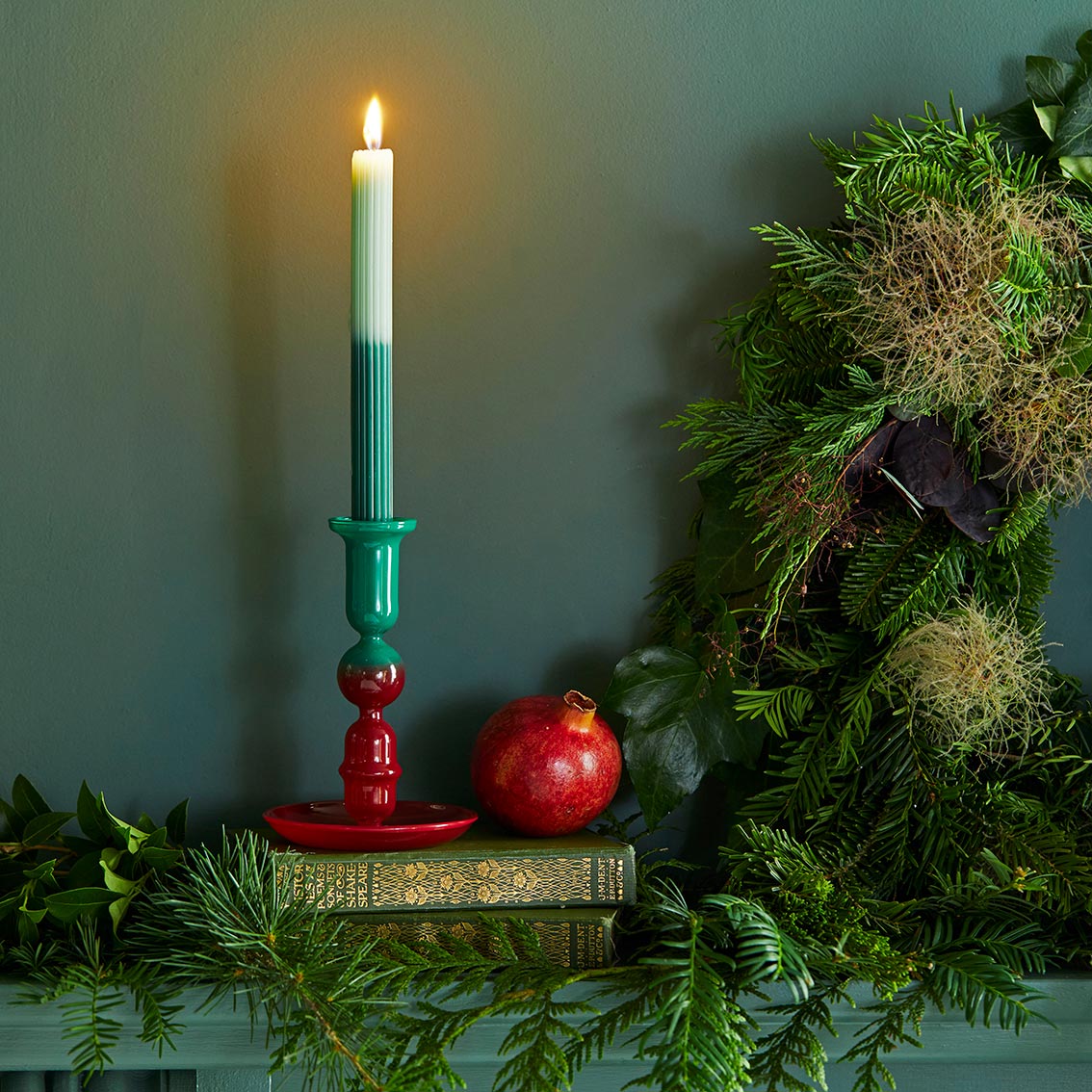 Why not showcase this beautiful red and green candle holder in the middle of a tablescape with our festive candles. Opt for the Holly Advent Candle for a stylish look and accessorise with our coloured candle holders, matches and Christmas home decorations.