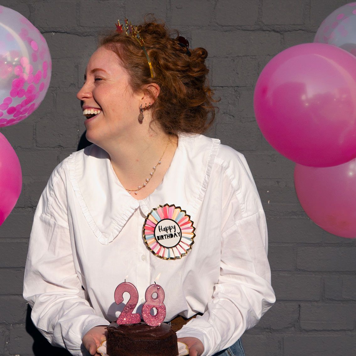 Rose Gold Happy Birthday Badge by Talking Tables. Make sure everyone knows it's your birthday with this pretty pink, blue and rose gold birthday accessory. Perfect for the birthday boy or girl to wear on their birthday or on a Virtual Zoom Party! Reusable and suitable for kids, teenagers and adults no matter how old they're turning. Pair with our 'Party Porcelain Rose Gold' or 'Rose' ranges for matching party decorations, tableware and supplies. Size: 12cm diameter.
