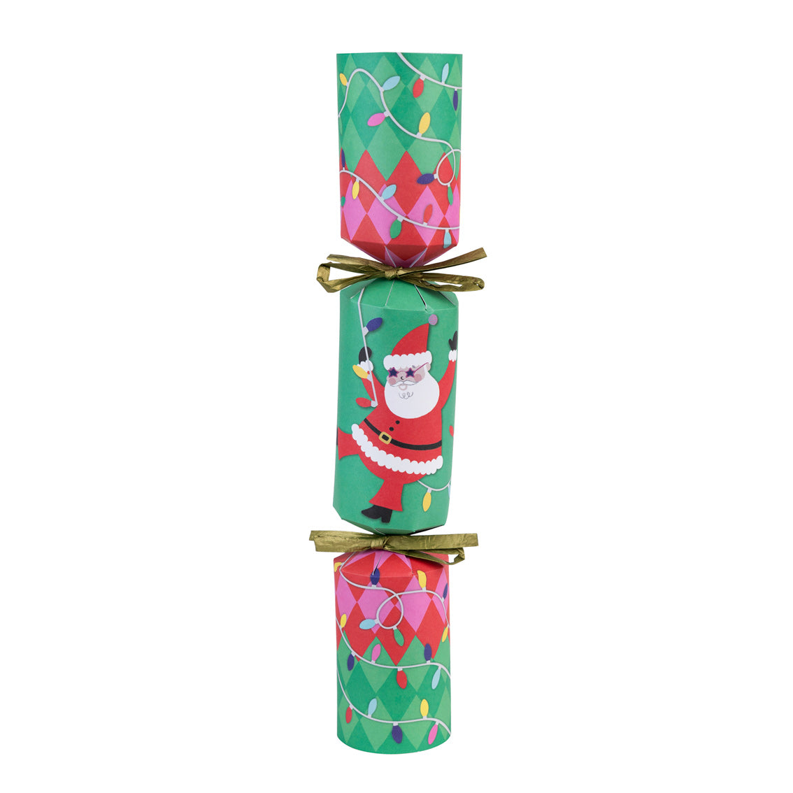 A bold, modern cracker set designed for customers who want their Christmas table to feel current rather than traditional. Part of the Fun Guy Santa range, these crackers feature graphic Santa illustrations set against bright colours and harlequin patterns, leaning into the Season of Cheer trend with confidence. The two design mix adds visual rhythm across the table, while hand finished details keep the set feeling considered, not novelty.