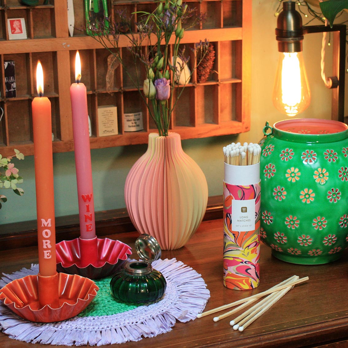 Once dinner is over:The candle holder will bring a pop of colour to a mantlepiece or side table all year round, when it’s not being used to create a cosy ambience for dinner.