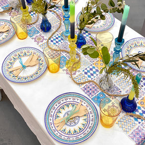 These Souk Blue Paper Plates are recyclable and come in two designs that complement each other effortlessly and pair perfectly with the recyclable paper napkins. Our Souk collection was inspired by our founder Clare Harris' trip to Morcocco where she fell in love with the beautiful tile patterns that are a famous feature of the markets.