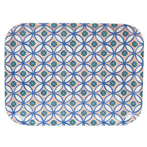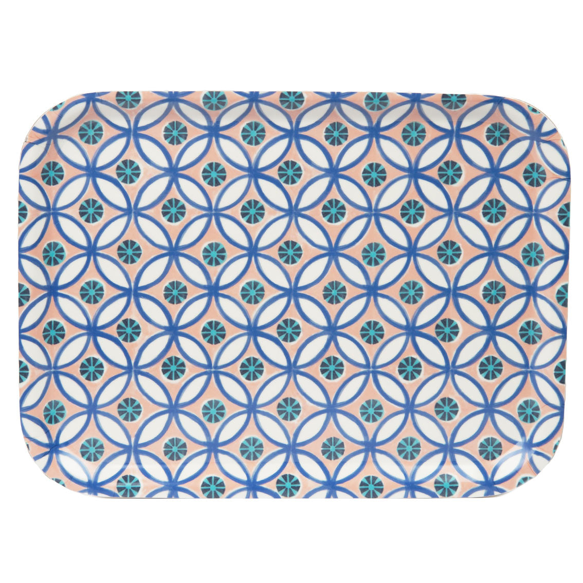 Made in Sweden from sustainably sourced birch wood, this geometric wooden tray is inspired by the tile prints found in Moroccan souks. The blue circles intertwine to create an repeated pattern with delicate pink and green details. This durable Souk Pink Wooden Tray will last through tea spillages and muck from potted plants through summers and winters.