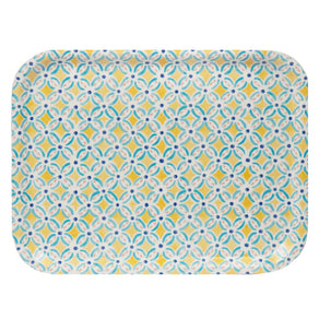 Pair with the blue and pink wooden tray to give your customers the choice of either. Merchandise alongside the other Souk inspired products to create a display of bright blues, pinks and yellows.