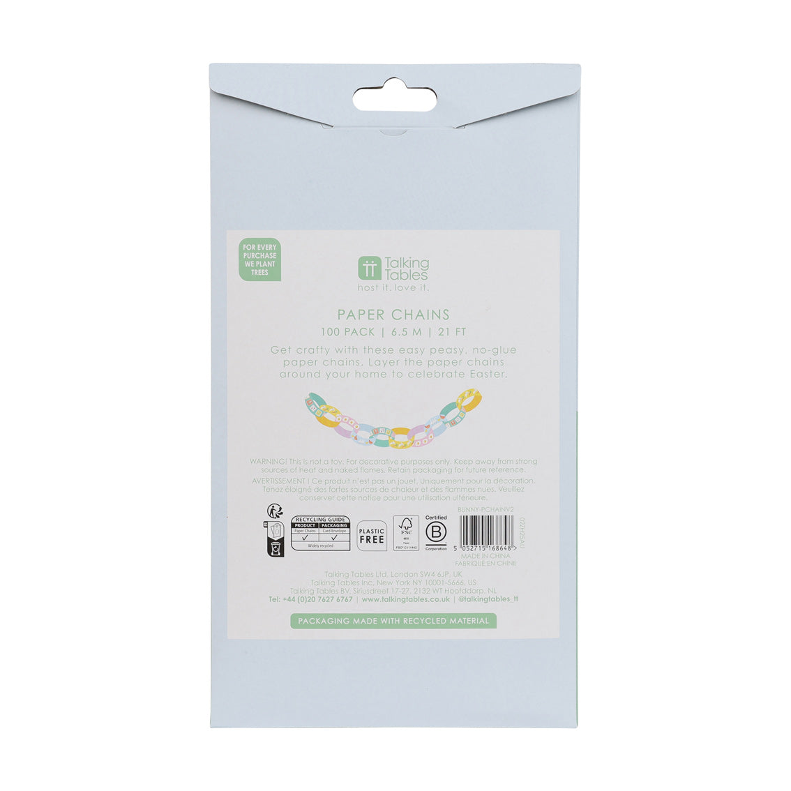 This Spring Icons Paper Chain Kit is an updated version of a previously popular sell-out line, refreshed with softer pastel tones across both the product and packaging. Featuring playful spring illustrations including bunnies, hens, carrots and fried eggs, the design feels light-hearted and on-trend, making it ideal for Easter and wider spring displays.