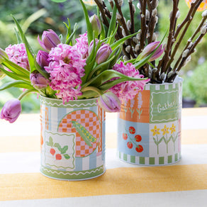 Part of our Bon Appetit collection, this set of two coordinating tins captures the freshness of spring with bright, graphic illustrations of radishes, peas, and daffodils. Designed in a cheerful mix of pastel tones and bold checks, they bring a relaxed bistro feel to kitchen or garden spaces. Made from lightweight yet durable tin, they’re ideal for holding utensils, cutlery, flowers, or craft tools. The smaller tin sits neatly inside the larger one for compact storage when not in use.