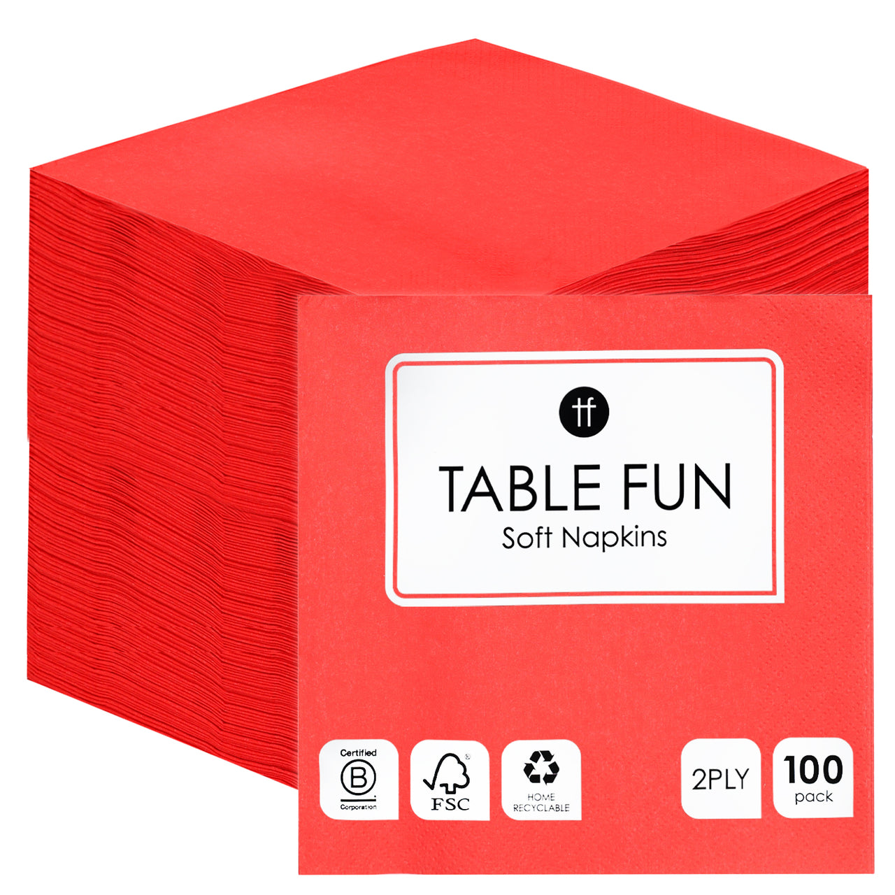 These vibrant red paper napkins come in a handy 100 pack and are crafted with eco-friendliness in mind. Made to be recyclable from FSC paper, these napkins allow for partying with a conscious commitment to the environment. The red colour adds an eye-catching pop to any table setting.