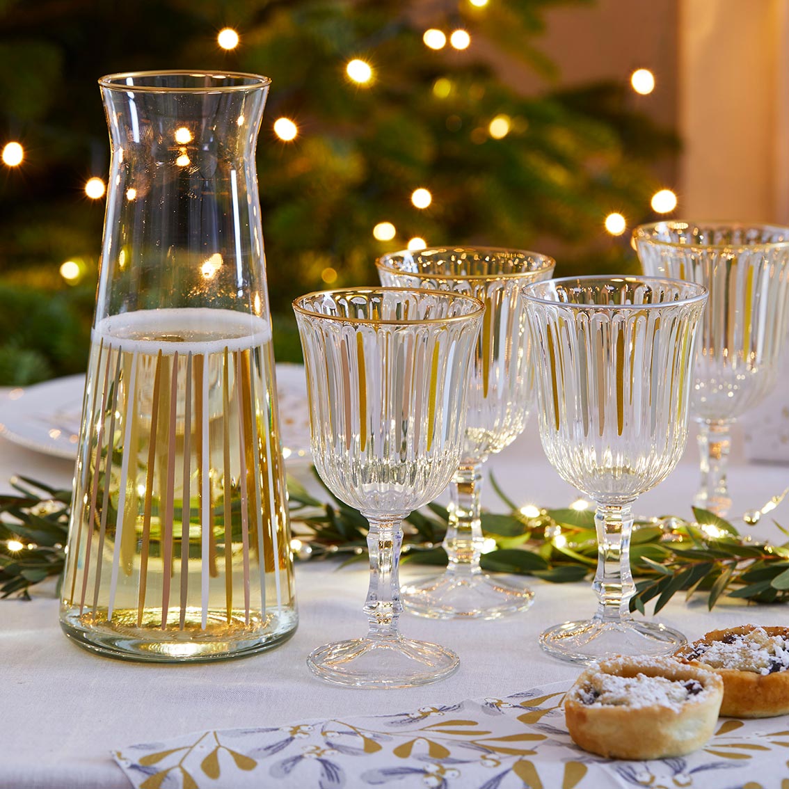 Hot on the success of our brightly striped wine glasses, we’re introducing a new colourway suitable for multi occasions, including Christmas. Our White and Gold Striped wine glasses are made in Europe and sit beautifully alongside our popular Mistletoe collection, but also add a touch of sophisticated style to any white and metallic themed occasion.