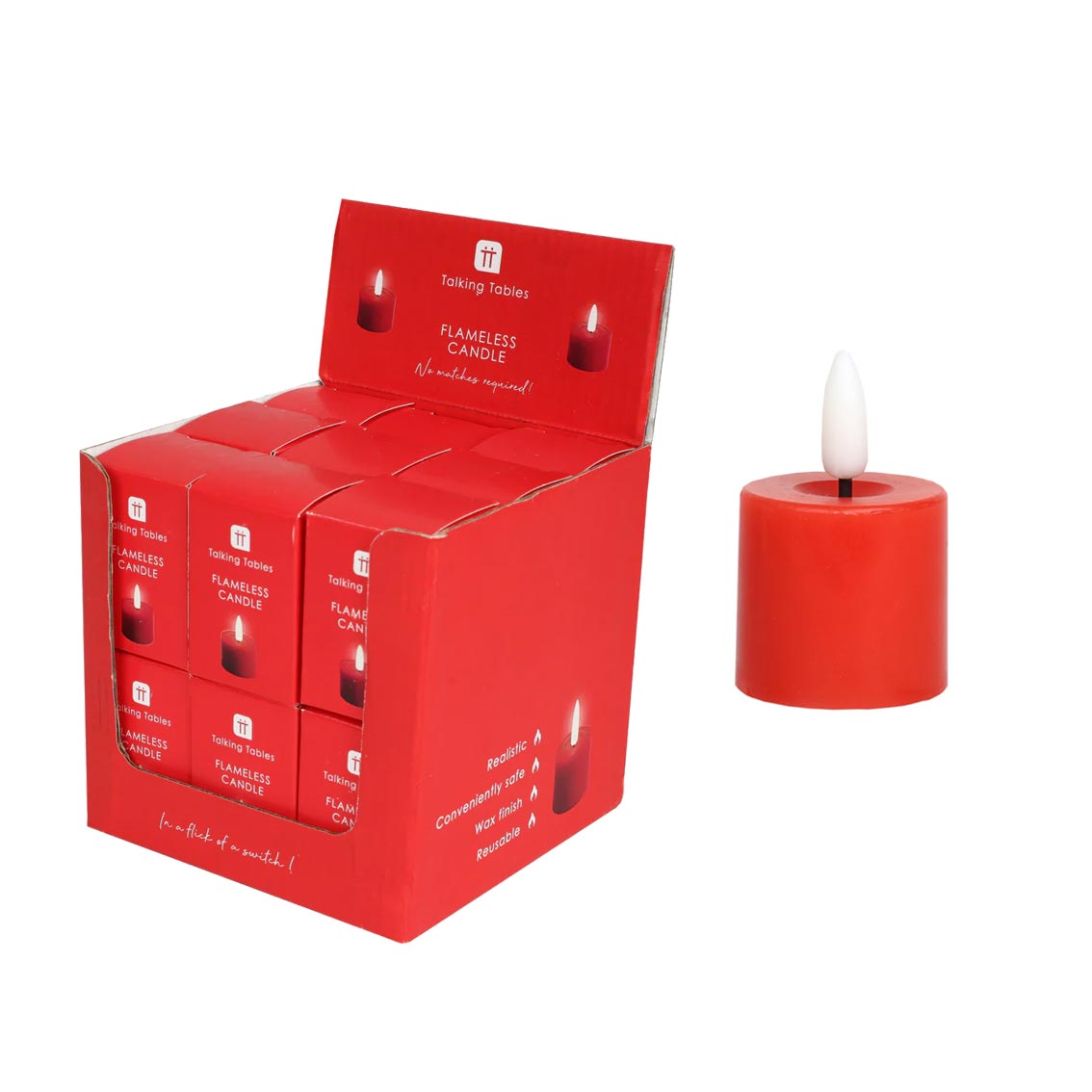 Illuminate your Christmas displays with our Flameless LED Tealight Candle – a red candle with a warm white LED light. This versatile and safe alternative to traditional candles has a wax finish to look more realistic and like a real candle. It offers a warm, flickering glow and is ideal for Christmas votives, centrepieces, or everyday use. Its vibrant red colour enhances festive decor but can also be used year-round. With their replaceable batteries, these tealights are reusable and can keep winter evenings cosy for years to come. This POS Unit contains 18 individually packaged Flameless LED Tealight Candles.
